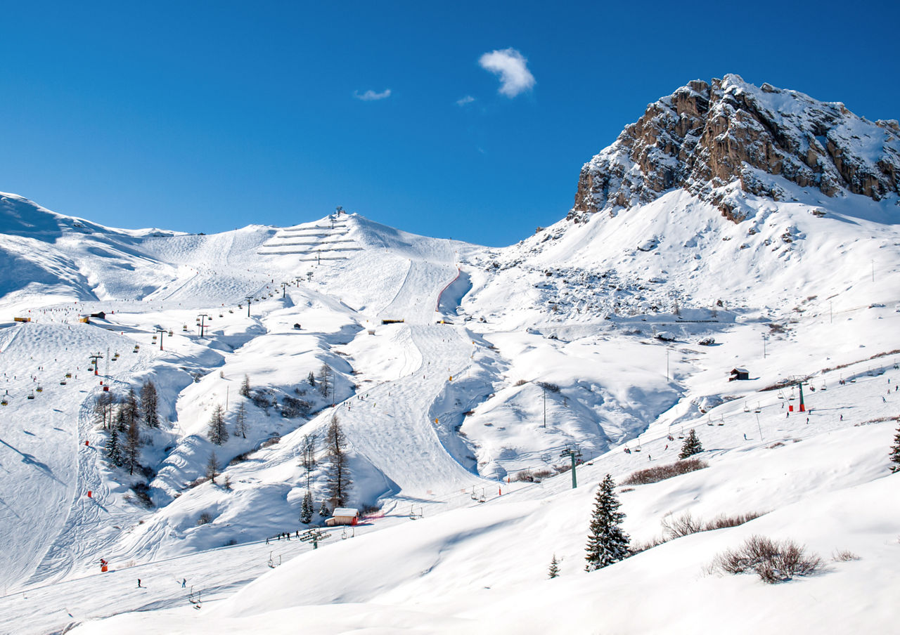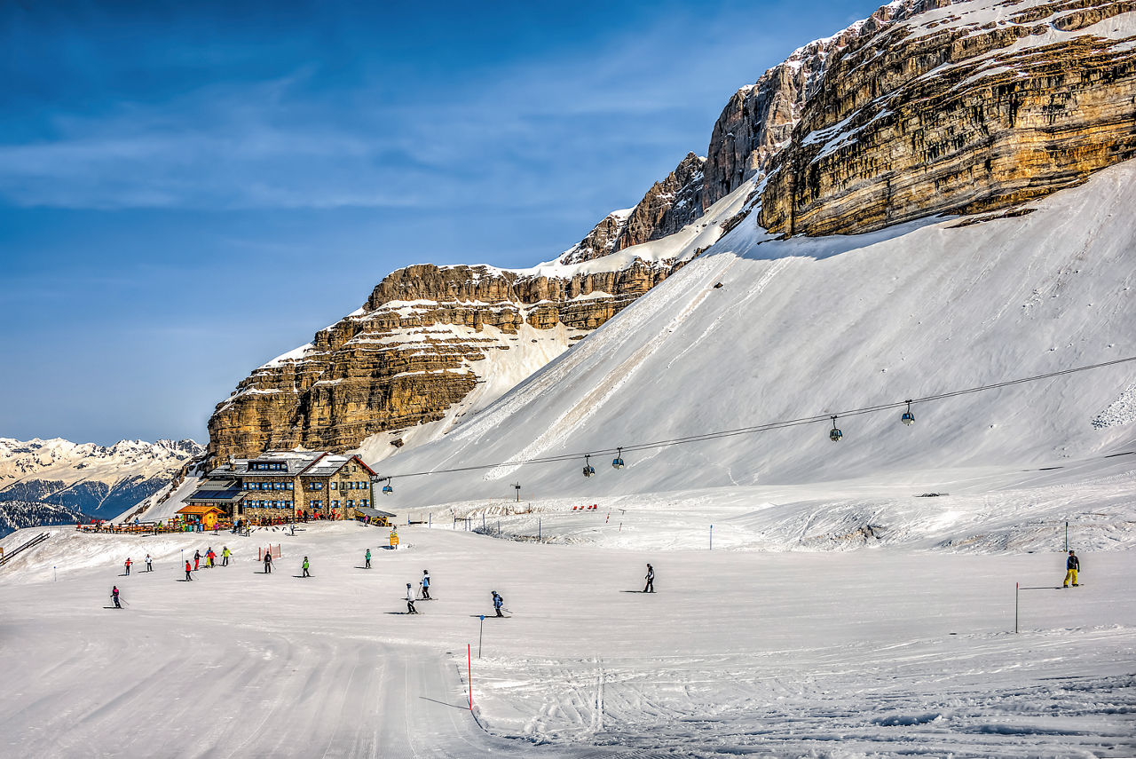 Nestled between the Gruppo del Sella Massif and the Marmolada glacier, Arabba offers some of the highest slopes in the Dolomites. Cortina d’Ampezzo, Alta Badia and Val Gardena are other lofty locales.